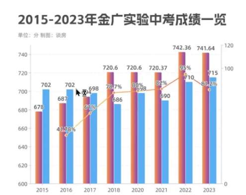 值得关注的是,项目配建的金广附为本部搬迁而来,综合教育水平实力雄厚。从历年中考成绩来看,金广附表现极为优异:2022年中考奥班均分759.3,年级均分742.36,位居广州第一;2021年平均分720+,82%的学生700+,58%的学生720+,全市前十的有3人,蝉联广州第一;2020年网传平均分720+,数学英语平均分140+,中考成绩再次蝉联广州第一。如此优异的教育成绩,充分证明了金广附的教育实力,为业主子女的成长成才提供了坚实的教育保障。