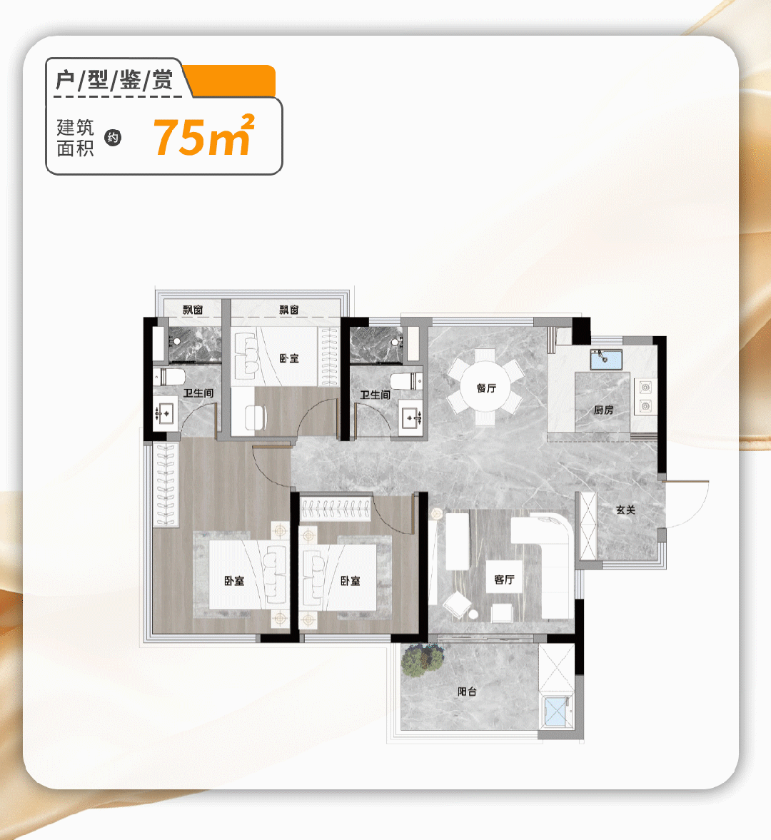 在户型设计上,信达·繁花里堪称“空间利用大师”。项目主推建面约75平方米三房、建面约94平方米三房(可改四房)以及建面约108平方米四房三种产品,均实现了超新规下的约120%实用率。以建面约75平方米的三房为例,该户型设置了独立玄关,可根据需求改造为储藏室,极大地提升了收纳能力;南北对流的设计保证了室内的通透与明亮;厨房采用U型布局,在有限面积内最大化操作台面,支持两人同时烹饪;主卧配备独立卫浴,并拥有270度的环幕视野,采光与景观效果俱佳。建面约94平方米的户型则采用了LDKG一体化设计,将餐厅、客厅、阳台与厨房串联成无界宽厅,约6.4米的超大阳台可灵活改造为绘画区、读书角或私家花园。而建面约108平方米的四房户型,更是做到了约15米的南向超大面宽,餐客厅连通约7.2米的阔景阳台,主卧还配备了步入式衣帽间,其空间尺度足以媲美市面上200平方米以上的豪宅产品。这些设计细节充分展示了开发商对居住痛点的深刻理解与精准回应。